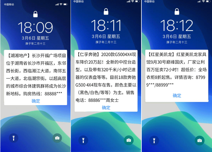 閃信群發(fā),高到達率,高閱讀率,低攔截率,閃信彈屏、直接閱讀,短信內容不留存手機,精準推送,無攔截無打擾、閱后即焚。
